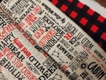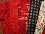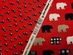 These fabrics feature a single theme of red, black, gray, white and bears