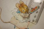 Both sides of the fabric are printed: one side has Peter Rabbit Blocks on White, the other has tonal green Peter Rabbit characters toile: