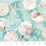 SPECIALTY FABRICS: Shells, Coral, and Starfish on Light Teal: White Sands by Melanie Samra by Northcott