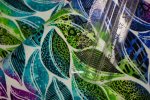 SPECIALTY FABRICS: Purple, Blue, Green, and Teal Leaves on White: Go With The Flow by Ann Lauer for Benartex